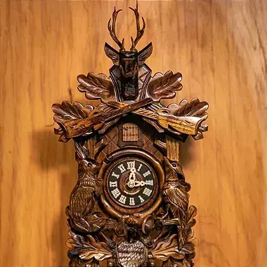 O Relógio Cuco Silvestre Eletrônico é uma verdadeira obra-prima da relojoaria alemã, produzido por mestres artesãos da tradicional região da Floresta Negra. Sua caixa exibe entalhes refinados de folhas de carvalho, faisão, lebre, cervo, trompa de caçador e espingardas, todos esculpidos manualmente com riqueza de detalhes, transmitindo a atmosfera silvestre e a herança cultural europeia. Equipado com mecanismo a quartzo, o relógio anuncia as horas com o canto do cuco, emitindo o número exato de chamadas a cada hora cheia. Inclui dois pesos decorativos, pêndulo em madeira, certificado de originalidade e manual em português. Seu funcionamento é simples e prático, utilizando apenas 2 pilhas tamanho C (recomendadas alcalinas para melhor desempenho).